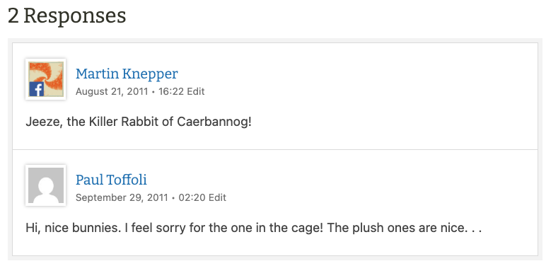 Hi, nice bunnies. I feel sorry for the one in the cage! The plush ones are nice. . .](https://betweendrafts.com/wp-content/uploads/2011/08/comments-2011-08-21.png)