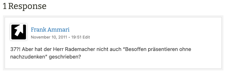 37?! Aber hat der Herr Rademacher nicht auch “Besoffen präsentieren ohne nachzudenken” geschrieben?](https://betweendrafts.com/wp-content/uploads/2011/11/comments-2011-11-10.png)