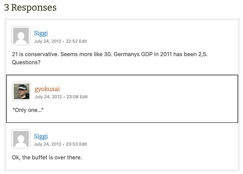 21 is conservative. Seems more like 30. Germanys GDP in 2011 has been 2,5. Questions?