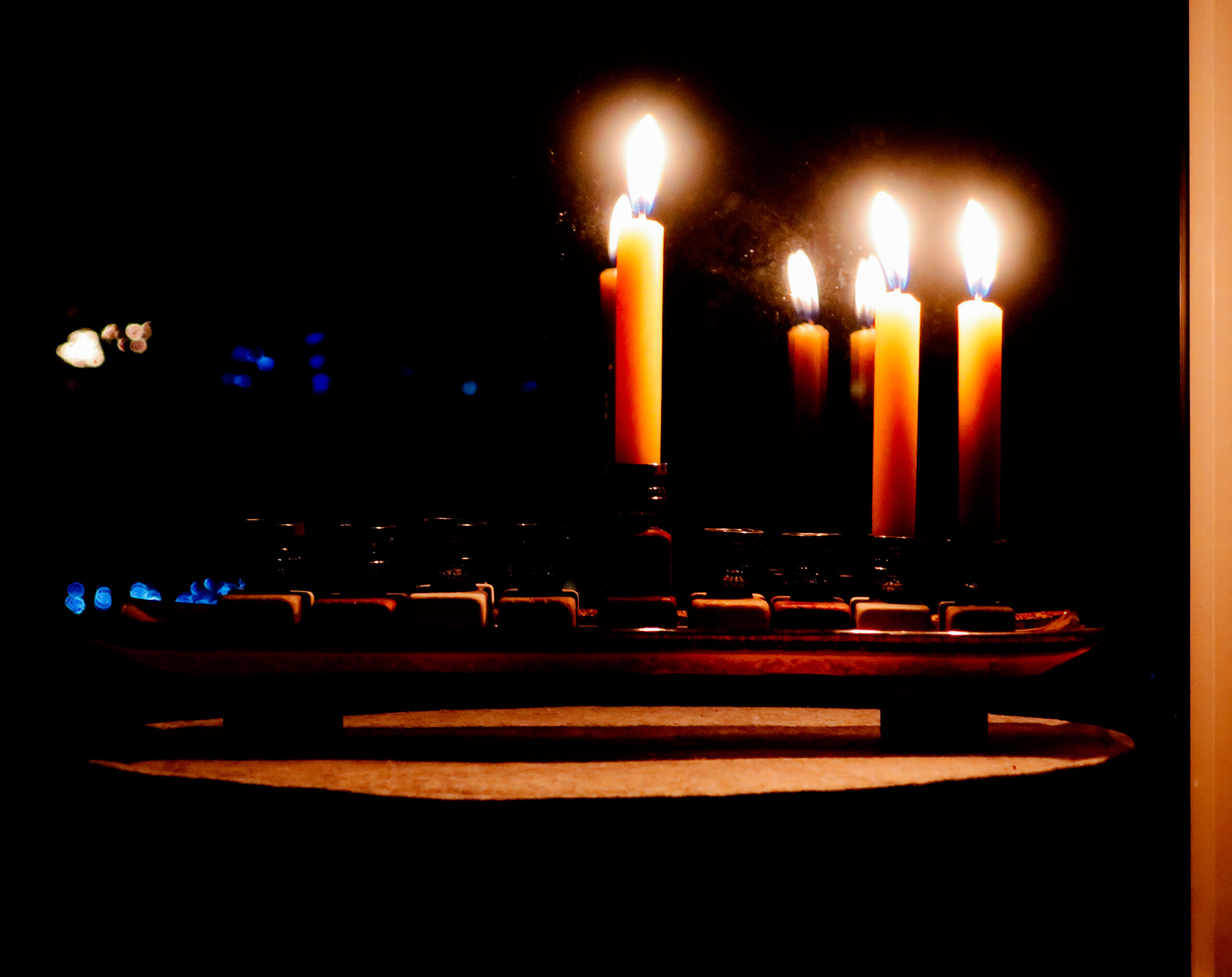 More in-depth, visual recognition of the Hanukkah lights, according to Talmudic commentators, is important to aid clear recognition of the respective day of the festival, as indicated by the number of lit candles, and in terms of “publicizing the miracle” for everyone to see. As a consequence, the Hanukkiah—the Hanukkah menorah or lamp—should be visible from the street by positioning it at the outer doorway or, in most cases nowadays, the window closest to the street. In “times of danger,” though, the Hanukkiah is lit privately, not publicly, and we will get back to that tomorrow, on the third day of Hanukkah.